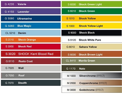 Current available colors at Modelraketten.NL Huidige verkrijgbare kleuren bij Modelraketten.NL CHROME EFFECT colors Chrome effects are achieved by having the metallic pigment particles located on the surface of the object you are spraying. This is achieved by the lacquer remaining "open" so that light can shine and reflect off these particles. However this results in chrome effect cans being less weather resistant and not abrasion proof. Finger marks may occur if handling chrome effect sprayed items. Applying Montana GOLD clear coats make the paint appear less shiny and prevent it from reflecting light as efficiently as prior to the clear coat application. |