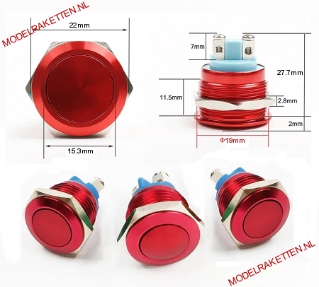 N E W / N I E U W / N E U Switch Momentary Push Button, Metal Red Oxidized 4A/250V Dit is een ronde, maak contact schakelaar, voor zwaar werk. De knop heeft een goed voelbare indruk weerstand en kan flink wat stroomsterkte weerstaan. Heel mooi als lanceerknop op je lanceerkastje. |