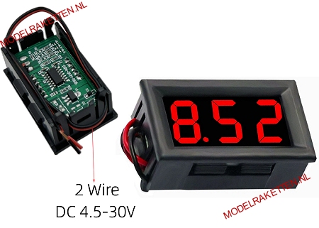 N E W / N I E U W / N E U Voltmeter Mini Digital DC Super om te gebruiken voor op je lanceerkastje. Is mijn batterij spanning wel okay? Nu weet je het! Aansluiten met een drukknopje of schakelaar natuurlijk. Zo voorkom je onnodig leegtrekken van de batterij. Niet dat de tester veel stroom verbruikt, integendeel! Maar je kunt beter alles gebruiken om je raketten te lanceren toch? Afmeting: ± 48x29x22mm. Gewicht: ± 13,6g. |