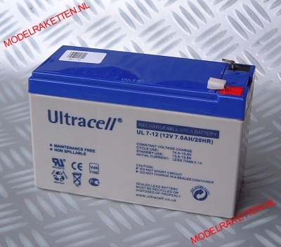 Oplaadbare en gesloten Start/Lanceer Accu van Ultracell, 12V, met een capaciteit van 7Ah.